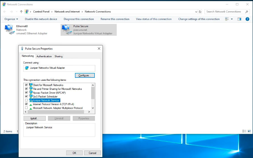 •On windows endpoint, disable JNPRNS driver manually from the network adapter stack using the powershell command
